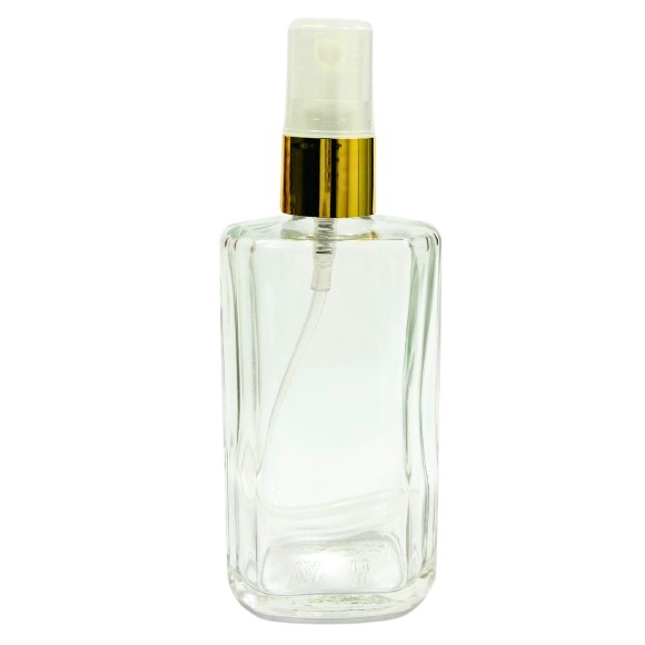 Frasco de Vidro 65ml, Com Válvula Spray Dourada.
